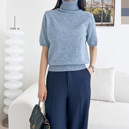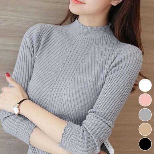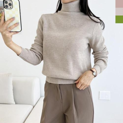 겨울 니트 폴라티 목티 반목 골지 면스판 티셔츠 여자 WFKY11U