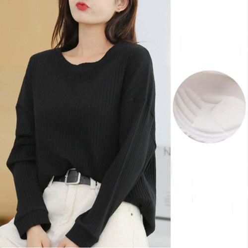 [셀럽하우스]여성 IRDQ2149 캡내장 코튼 긴팔 노브라 티셔츠 브라티 블랙