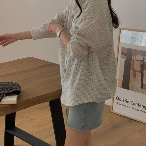 [다잇템]여자 면원단 격자 페미닌 클래식 블라우스