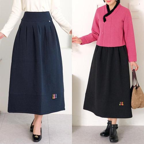 [에이비에프지]백 트임 포인트 롱 면 스커트 APZ5QS01G