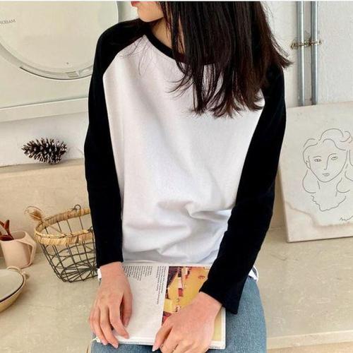 [셀러허브_여성트랜드패션]가을티셔츠 티셔츠 무지 카라티 기본 면티 맨투맨 긴팔 남성 오버핏 라운드티 ..