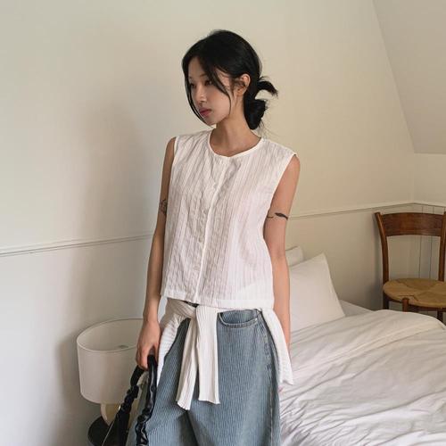 [신상오픈런]여성 코튼 무지 펀칭 라운드넥 나시 블라우스