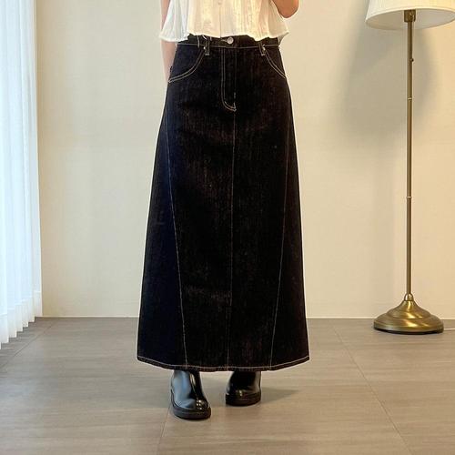 [옷자락] 여자 A라인 논페이드데님 사선 절개 맥시 면 롱스커트
