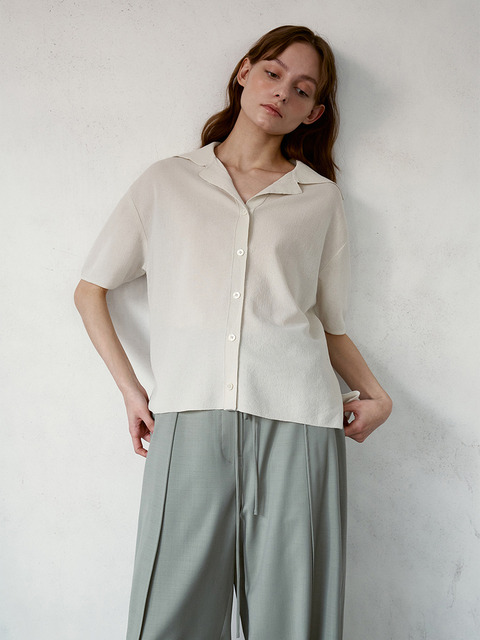 26 SS 보테가 베네타 와이드 스프레드 카라 코튼 니트 가디건 크림 829580V59X09071