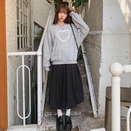 [다잇템]여자 레이스 면혼방 하트 빅사이즈 맨투맨