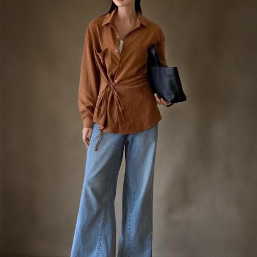 [신상오픈런]여성 가을 하객 의상 프릴 퍼프 빅사이즈 유넥 면 셔츠