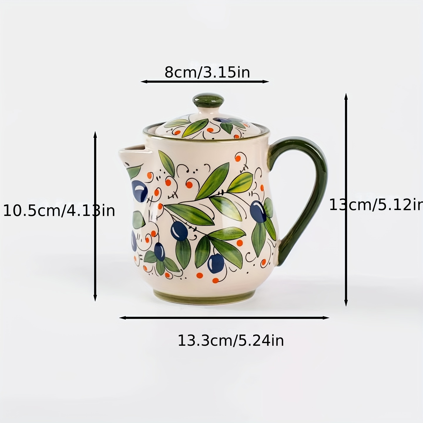 TEMU 플란크 전시대 수중 핸드페인팅 세라믹 크로시아올 오일 병, 누수 방지 소이 소스 및 식초 디스펜서 세트, 가정용 주방 사용 - 올리브 그린 세라믹 오일 포트, 소스 자르, 우유 주그, 조미료 용기, 우유 주그 소형, 커피 포트, 주방 액세서리