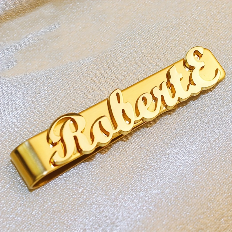 TEMU 남성용 개인화 스테인레스 스틸 넥타이 클립 - 맞춤 이름 새김, 비즈니스 스타일 문자, 패셔너블 드레스 액세서리, 결혼식, 생일 및 공식 행사에 이상적입니다.