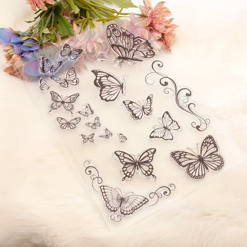 TEMU 1개 창의적인 나비 패턴 투명 스탬프 - 재사용 가능한 실리콘 & PP, DIY 스크랩북 & 카드 만들기용 투명 고무 씰, 다양한 디자인의 사각 곤충 테마 공예 스탬프, 나비 스탬프