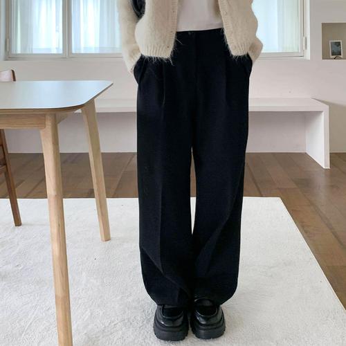 [시크블랙]모디드 모직 투핀턱 와이드 슬랙스