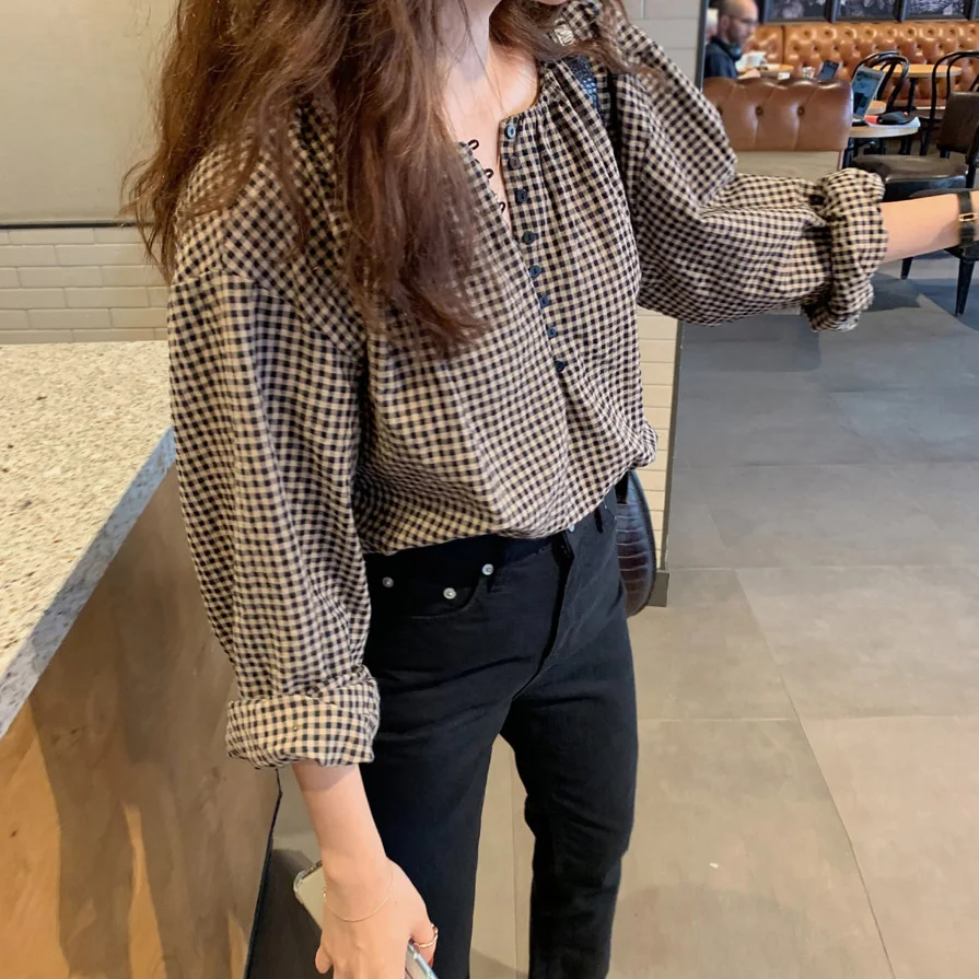 레트로 민족 스타일 자수 벨트 라운드 넥 랜턴 슬리브 셔츠 여성 루즈 캐주얼 탑 패셔너블 베이스 레이어 셔츠