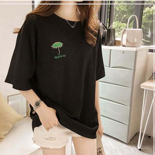 [셀럽하우스]여성 KRKB3213 기본티셔츠 우산 자수무늬 캐주얼 베이직 반팔티