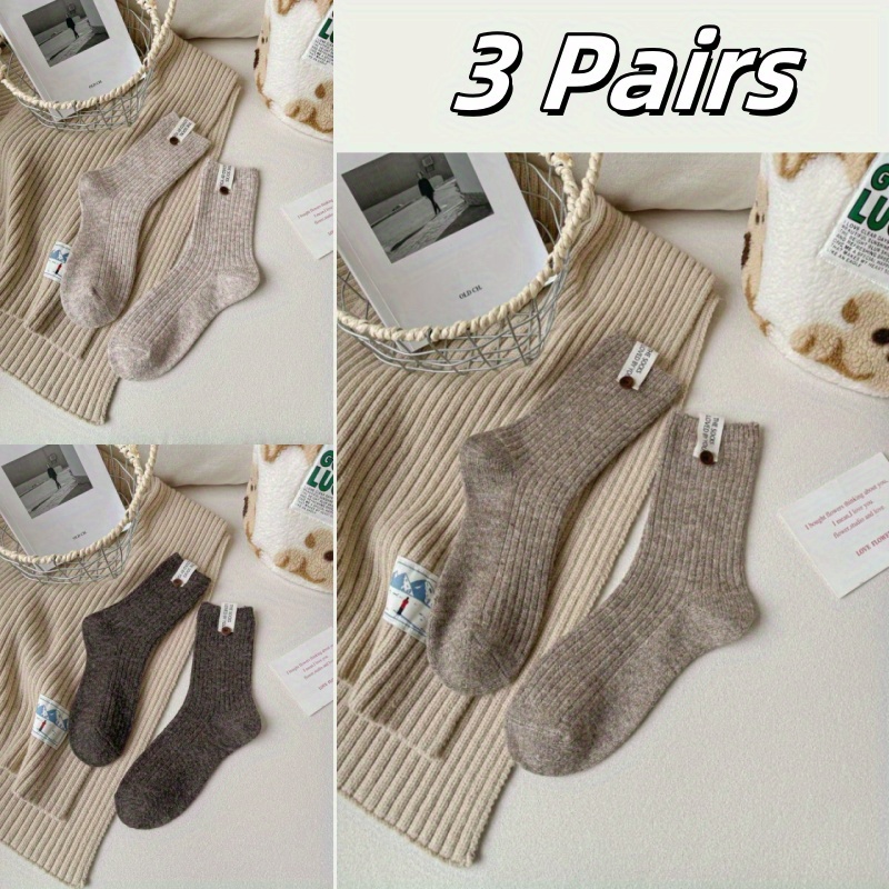TEMU 3쌍 여성용 미드캐프 양말 - 두꺼운 따뜻한 한국 스타일 버튼업 양말, 탄력 있는 커프, 단색 (블랙/베이지/화이트), 캐주얼 & 포멀웨어, 다용도 & 편안함, 귀여운 양말, 일상화, 디자인, 내구성 있는 소재