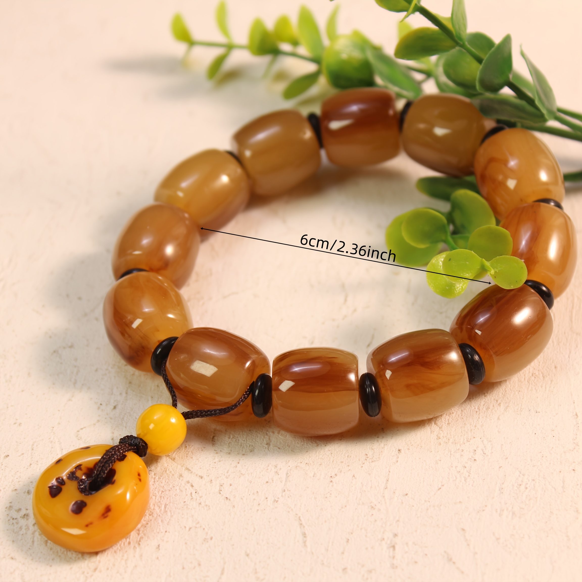 TEMU 남성용 티베트 야크 뿔 기도 구슬 팔찌 - 천연석 비즈와 검은 끈 & 노란 태슬, 5월 탄생석 주얼리, 일상 착용 및 음악 축제 선물, 발렌타인데이 액세서리, 전통 공예품