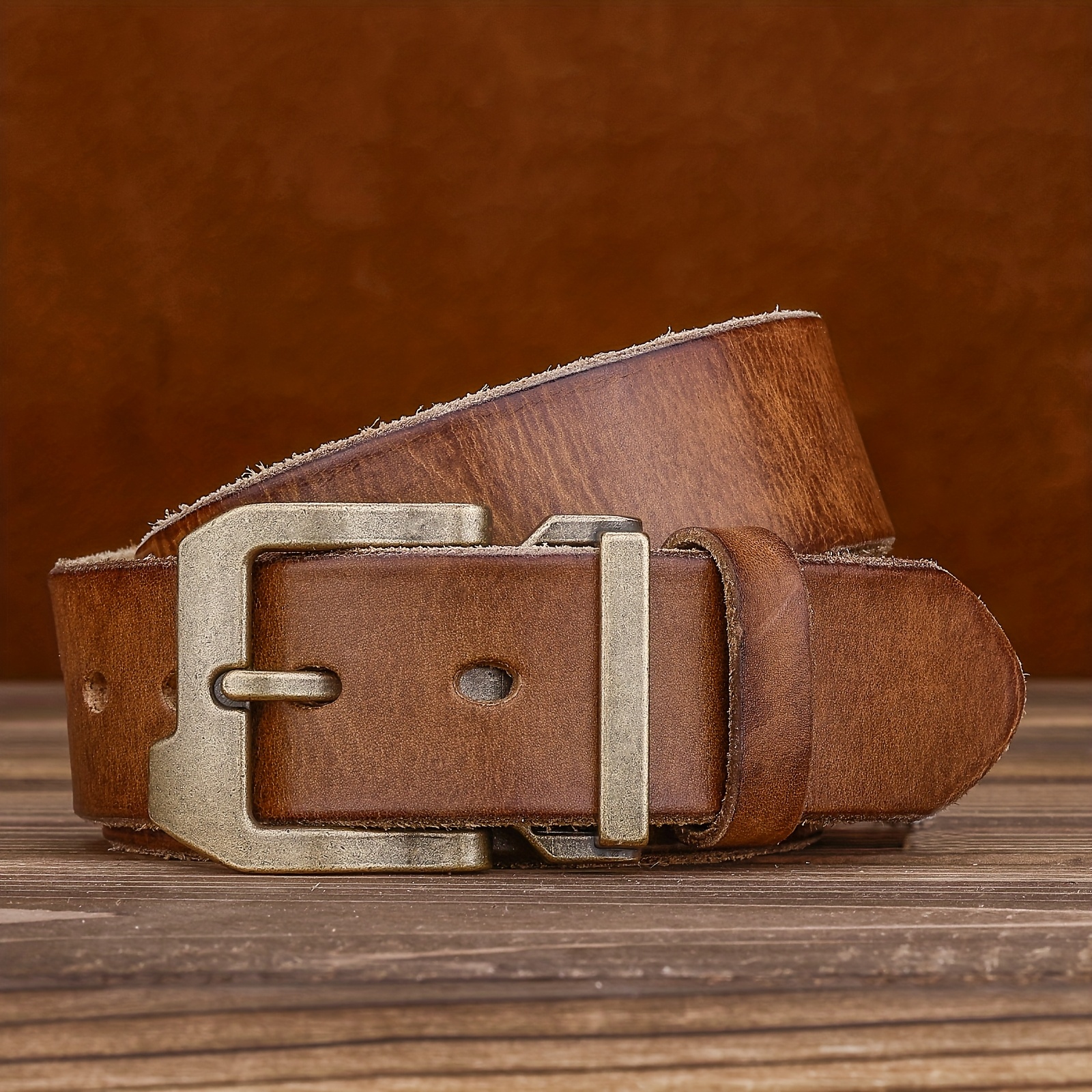 TEMU 남성 및 여성용 진정 가죽 벨트 | 빈티지 서부 스타일의 골든 톤 버클 | 옵션 | 튼튼하고 세련된 캐주얼 의상 | 데이, 축구 이벤트 및 마르티 그라스에 적합