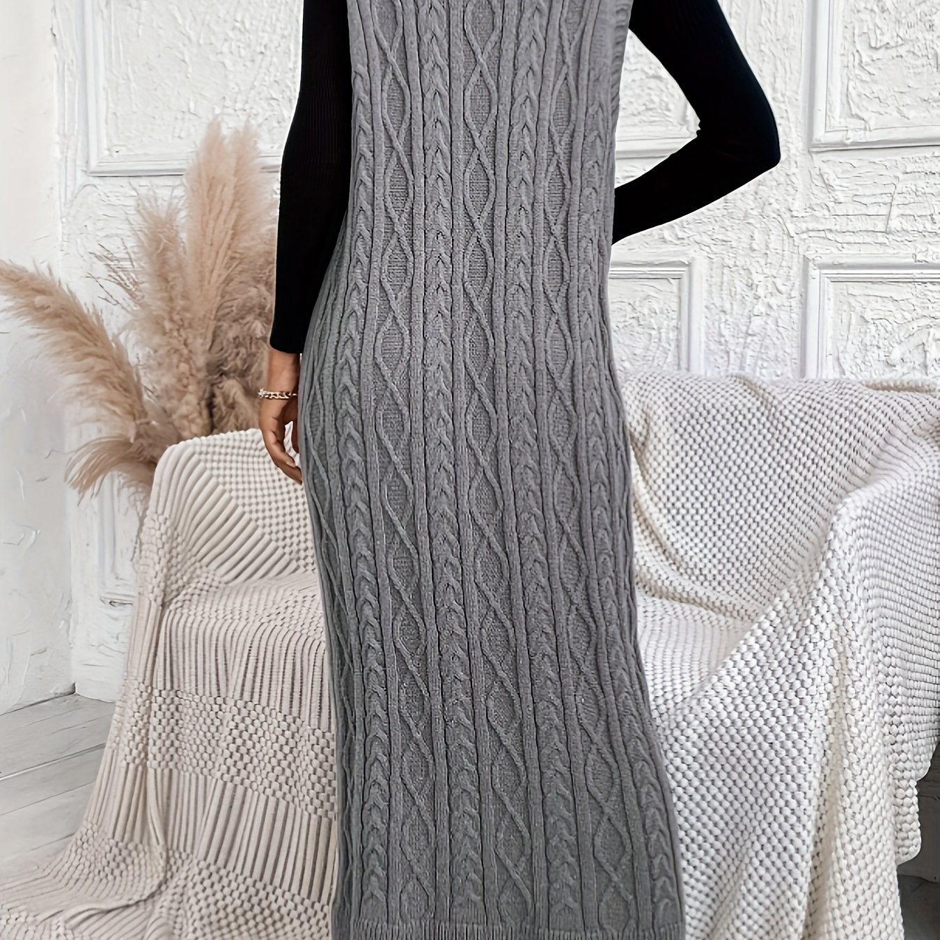 TEMU 플러스 사이즈, 고급스러운 롱라인 스웨터 드레스 - 하이넥 긴팔 포켓 디자인, 사이드 슬릿 헴, 세탁기 사용 가능 여성용 가을 겨울 드레스, 우아한 스타일, 내구성 있는 소재, 세련된 레이디스 웨어