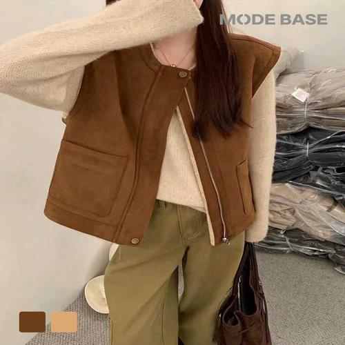 [코데즈컴바인]하이넥 스웨이드 무스탕 조끼 CKD-LE381WB