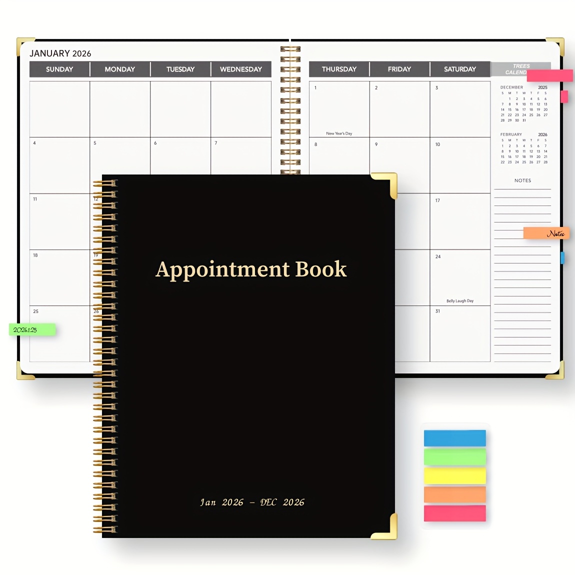TEMU 2026 A4 날짜별 약속 플래너 - 하드커버 스케줄 정리, 월별 레이아웃, 데일리 비즈니스 플래닝용 두꺼운 종이, 영어, 2026년 1월~12월, 업무용 플래너, 달력, 월간플래너, 자기관리, 사무용품, 문구, 스케줄 플래너, 일일플래너|달력|달력|2025년달력