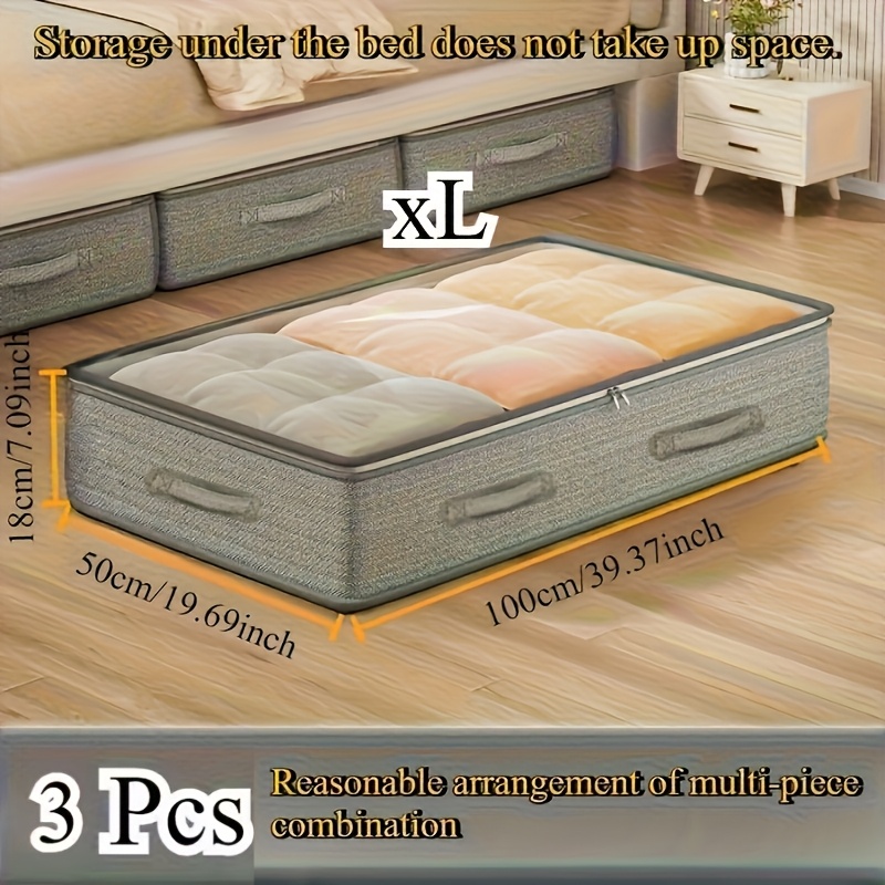 TEMU 손잡이 달린 침대 밑 수납 상자 3개 세트 - 접이식 패브릭 정리함, 담요, 수건, 퀼트, 스웨터, 베개, 시트 및 포장지 등을 위한 다중 칸막이 디자인