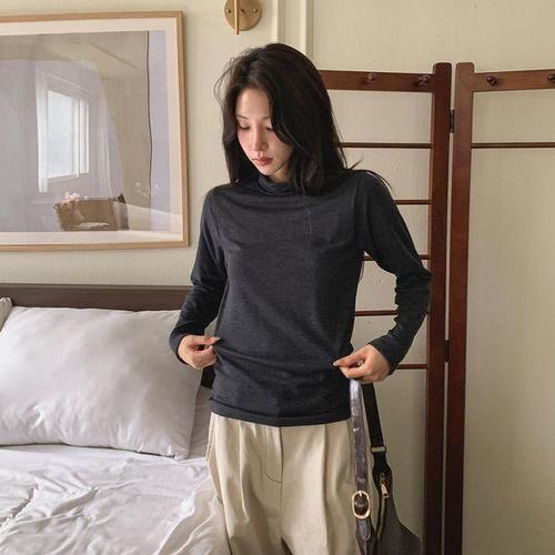 [다잇템]여성 클래식 롱슬리브 무지컬러 하이넥 티셔츠