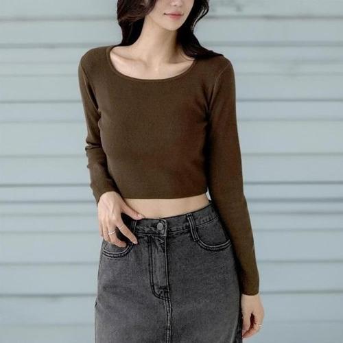 [신상오픈런]|CST994E|여성 크롭 긴팔 티셔츠 스퀘어넥 기본 무지 잔골지 니트 가을용_23067341_597559