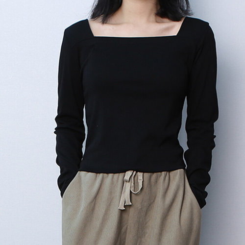 파라노말샵 / 4색 무지 스퀘어넥 긴팔 크롭티(파라노말샵)