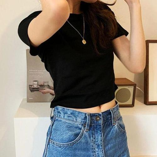 [셀러허브_여성트랜드패션]ONM 무지 크롭 티셔츠 베이직 이너 여성 레이어드