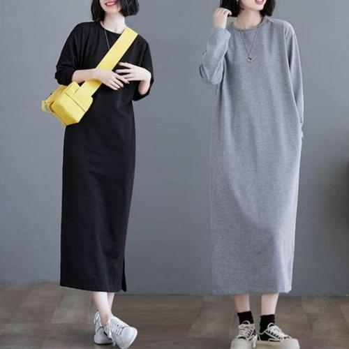 [엄지척]무지 긴팔 맨투맨 원피스 캐주얼룩 양쪽 포켓 포인트_19914053_667501