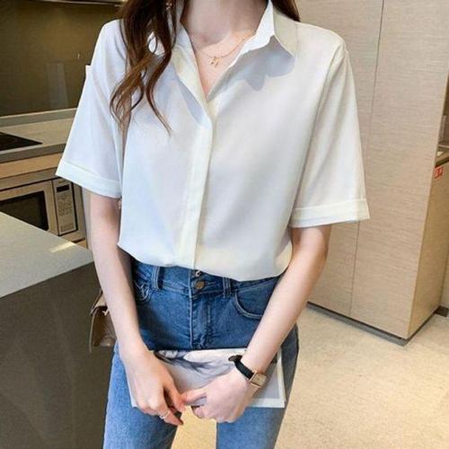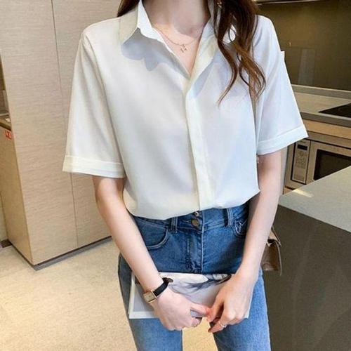 [에이치플러스몰]5부 여성 캐주얼 소매 무지 필수템 쉬폰셔츠 상의 여