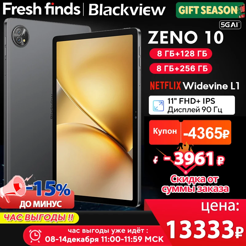 【세계 최초 공개】블랙뷰 제노 10 5G AI 태블릿 11인치 FHD+ 90Hz 디스플레이 와이드바인 L1 8800mAh 쿼드 스피커 안드로이드 15 패드 PC