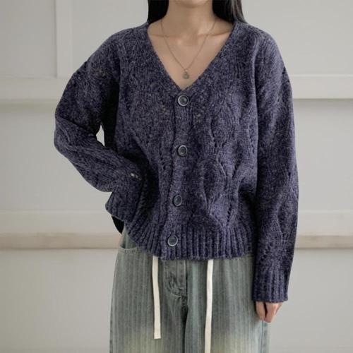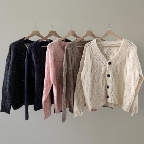 [미라클세븐]여성 다이아 스카시 가을 니트 딥 브이넥 오버핏 가디건