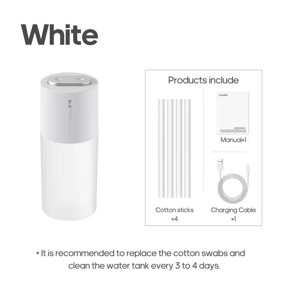 무선 충전식 가습기 듀얼 노즐 콜드 미스트 LED 야간 조명 미니 사무실 차량 가정용 생일 선물 가족용