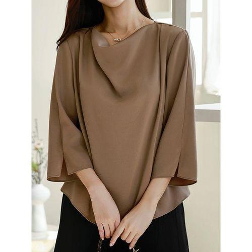 마켓에이 여성용 실크 슬림핏 미시블라우스