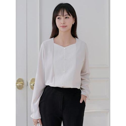 [드리다]스퀘어넥 빅사이즈 쉬폰 긴팔 블라우스 미시 하객 모임 상견례 40-50대