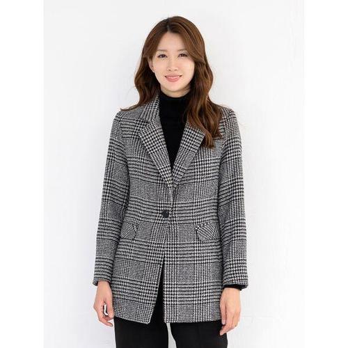 여자 겨울 미시 정장 노카라 울 라운드 자켓