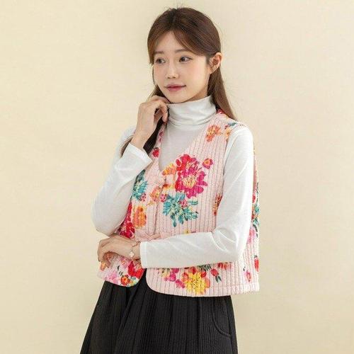 [디얼마미][디얼마미] 구월 꽃고리 누빔 조끼 /마담 미시 중년 여성 빅사이즈 40대 50대