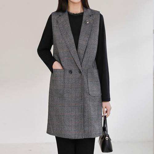 [드리다]글렌 체크 카라 빅사이즈 롱 정장 베스트 조끼 미시 중년 엄마옷 하객 모임 상견례