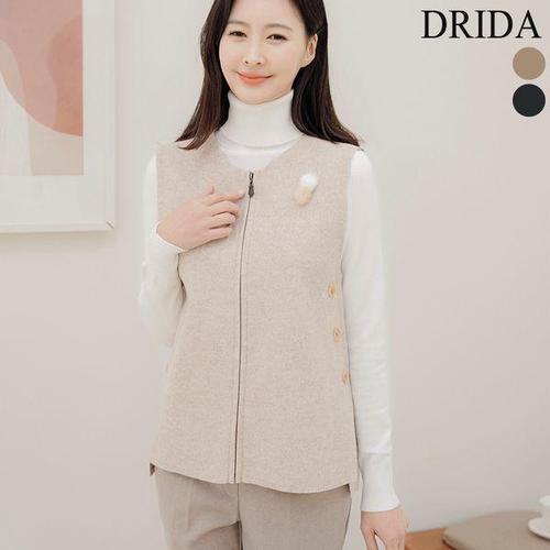 [드리다]엄마옷 여자 집업 버튼 모직 빅사이즈 오픈 조끼 베스트 40-50대 미시 중년여성의류 마담 하객 ..