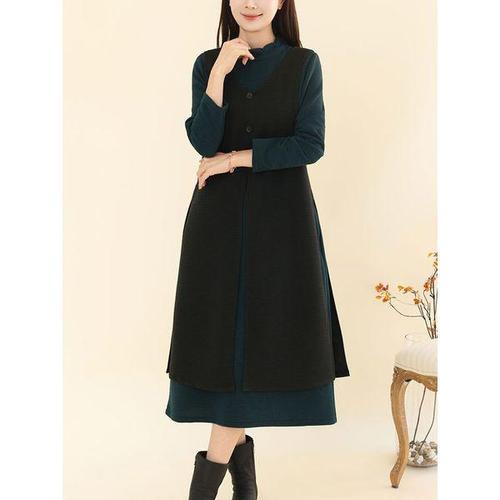 [디얼마미][디얼마미] 브이 울 조끼 원피스 세트 /마담 미시 중년 여성 빅사이즈 40대 50대