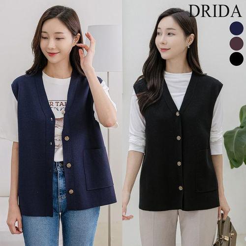 [드리다]여성 봄 가을 브이넥 미디 오픈 니트 베스트 조끼 40-50대 미시 중년여성 엄마옷 캐주얼 출근 모..