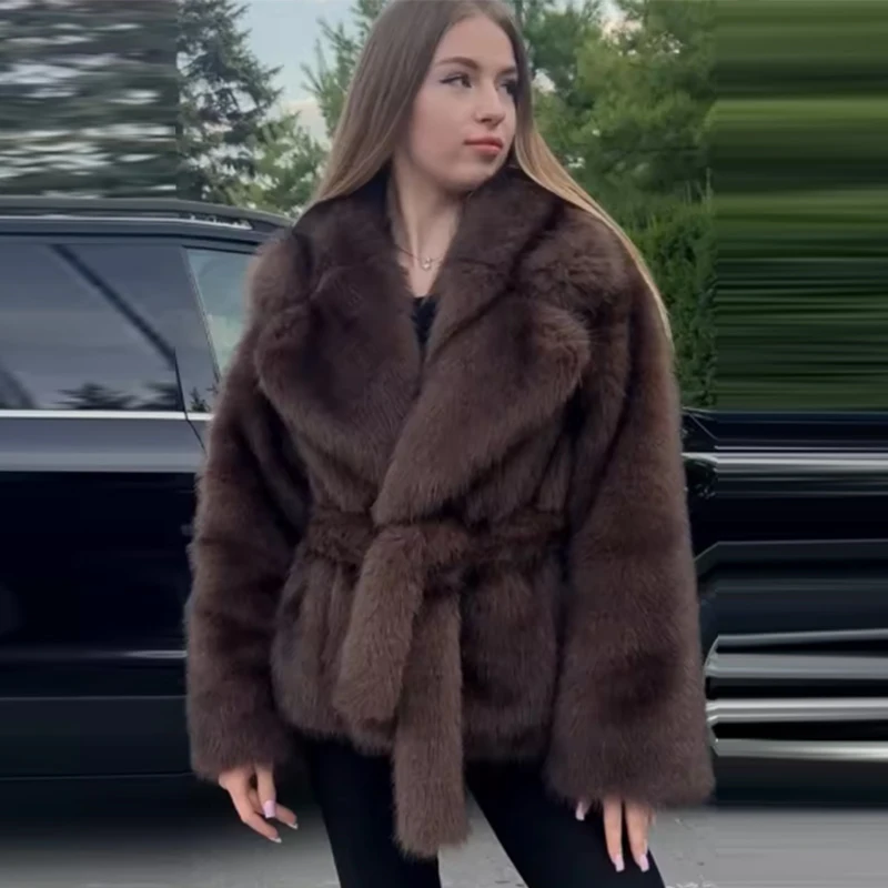 고급스러운 따뜻하고 두꺼운 인조 소프트 퍼 코트 여성용 루즈핏 라펠 롱 슬리브 친환경 코트 2025 가을 겨울 신상 여성 퍼 아우터
