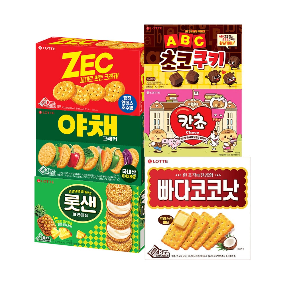곽과자(abc초코쿠키/칸쵸/제크/빠다코코넛/롯샌/야채크래커) 6종 2개+2개 골라담기