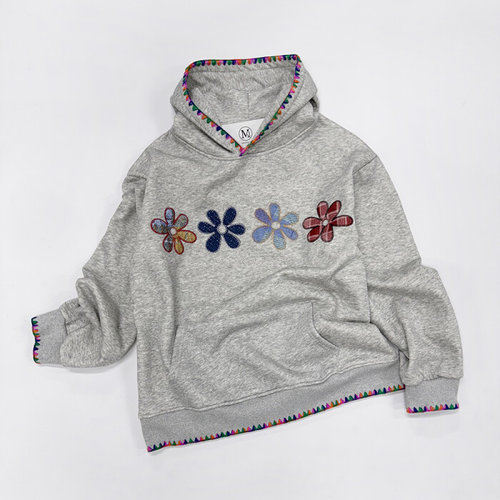 미즈큐즈 / 융기모 플라워 자수 배색 루즈핏 후드 티셔츠