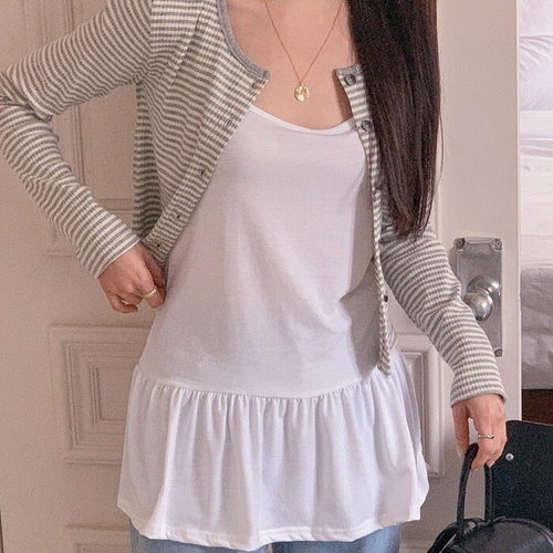 플러리싱 / 심플 절개라인 셔링 민소매티 플러리싱