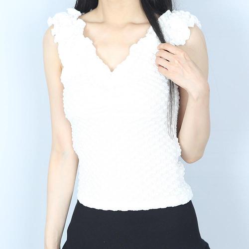 [다잇템]여성 끈 리본 슬리브리스 사랑스러운 프릴 셔츠