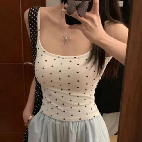 [라일리여성의류] Rly 캡내장 데이트룩 백오픈 도트 나시탑 JSC-1