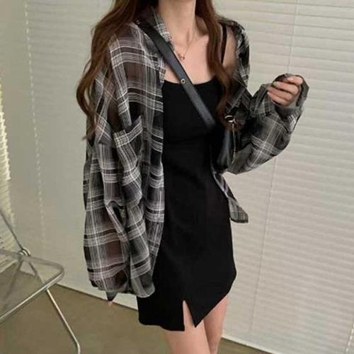 [엄지척]캐주얼 여친룩 체크 셔츠 나시 원피스 세트_19913946_667501