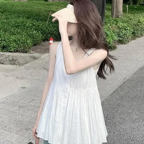 옷자락 / 여성 데일리 더블핀턱 민소매 블라우스