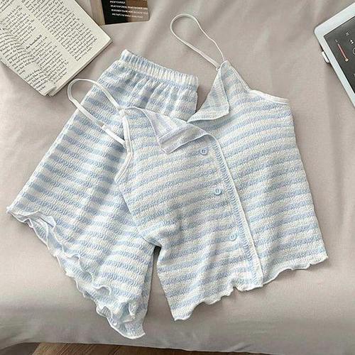 [페리엠]스트라이프 민소매 반바지 셋업 바캉스 벨디르투피스