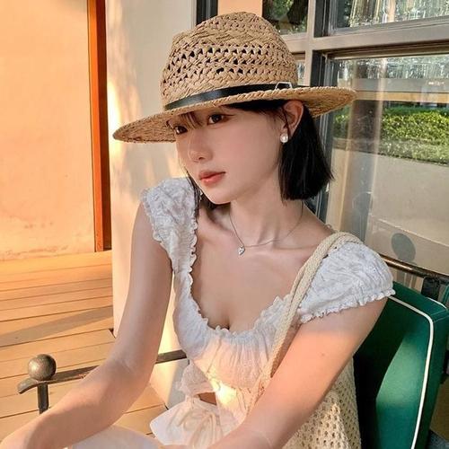 [JHQSWVJZ_51IE]밀짚 라탄 벙거지 모자 휴가